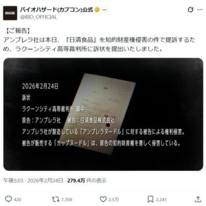 【速報】アンブレラ社が日清食品を提訴wwwww 1: 名無し 2026/02/24(火) 22:09:21.28 ID:jyrJEvDb0 2: 名無し 2026/02/24(火) 22:10:15.85 ID:7YLA […]