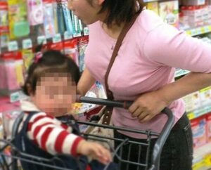 【画像】スーパーで買い物する子連れママさん、立派なパイスラ新着!!