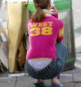 【画像】路上でタバコ吸うギャルさん、ローライズでしゃがみパンチラ新着!!