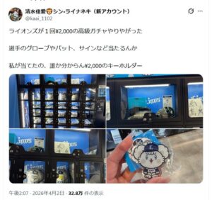 【悲報】 西武ライオンズさん、一線を超えた商売を初めてしまうwwwwww 1: 名無し 2026/04/03(金) 00:15:01.85 ID:9xT6wBnK0 グローブやバットで釣る高級ガチャ1回2000円 2: […]