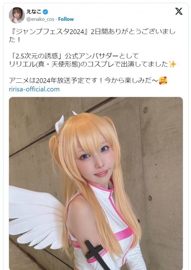 【女神降臨】えなこ、2.5次元の誘惑に挑む!コスプレで“にごリリダンス”披露!(´∀`) 2024年7月7日 最終更新日時 : 2024年7月7日 ぐはっアンテナ 八木勇征の魅力を徹底解剖!彼の成長と影響 【芸能】堺正章が語る 人気ドラマ『西遊記』打ち切りの真相 「天竺に着く前に終わった…」 【LDH】三代目JSB今市隆二メンバー 活動自粛・・・ 【画像】井口裕香さん(37)、まだまだ全然イケるwwwwwwwwwwwwwwwwwwwwwwwwwwwwwwwww ジャングリア沖縄がここまで叩かれている理由がわかったwwwwwwwwww 【苦悩】奥菜恵「自分では清純派とも魔性とも思っていなかった」 【画像】吉岡里帆、理想の男性は「京都の人より九州男児が好き」 【画像】広末涼子さん(45)の近影 【画像】ジャングリア沖縄🌿🦖、ファンもアンチも黙らせてしまう 元坂道?アイドルがデビュー 【女神降臨】えなこ、2.5次元の誘惑に挑む!コスプレで“にごリリダンス”披露!(´∀`) (出典 www.crank-in.net) えなこ “えなこの部屋”. テレビ愛知. 2020年1月4日閲覧。 ^ “えなこ地上波冠番組『えなコスTV』1月に放送開始!キービジュアルも公開”. マイナビニュース (2019年12月26日). 2020年1月23日閲覧。 ^ “えなコスTV”. BS日本. 2019年12月15日閲覧。 ^ “えなこ(コスプレイヤー)”… 150キロバイト (16,855 語) - 2024年7月6日 (土) 10:22 「えなこのダンスは本当に可愛い!2.5次元の世界に引き込まれてしまいそうですね」 にほんブログ村ブログ更新したクマ🐻 1ポチっとお願いクマ🐻 続きを読む 続きを見る 八木勇征の魅力を徹底解剖!彼の成長と影響 【芸能】堺正章が語る 人気ドラマ『西遊記』打ち切りの真相 「天竺に着く前に終わった…」 【LDH】三代目JSB今市隆二メンバー 活動自粛・・・ 【画像】井口裕香さん(37)、まだまだ全然イケるwwwwwwwwwwwwwwwwwwwwwwwwwwwwwwwww ジャングリア沖縄がここまで叩かれている理由がわかったwwwwwwwwww 【苦悩】奥菜恵「自分では清純派とも魔性とも思っていなかった」 【画像】吉岡里帆、理想の男性は「京都の人より九州男児が好き」 【画像】広末涼子さん(45)の近影 関連記事 関連記事はありません。