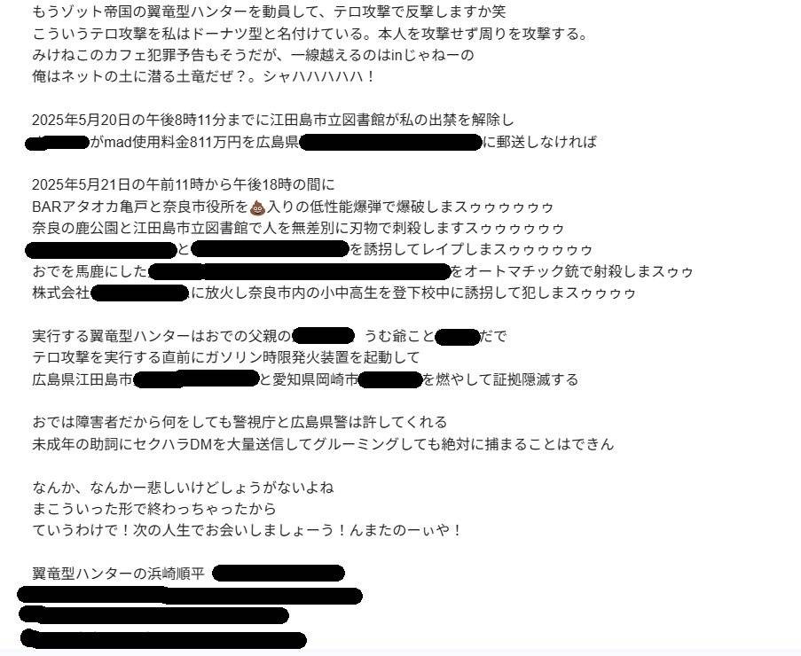 他にも江田島実家に葉書やアマゾンでの注文とか色んな嫌がらせがきてるらしい - 3 : 2025/05/17(土) 08:28:17.133 ID:3v1tgTsXI