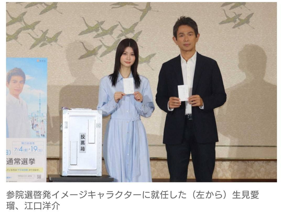 「めるる」ことタレントで女優の生見愛瑠(23)と俳優の江口洋介(57)が16日、参議院選挙(20日投開票)の投票デモンストレーション記者発表会に出席した。