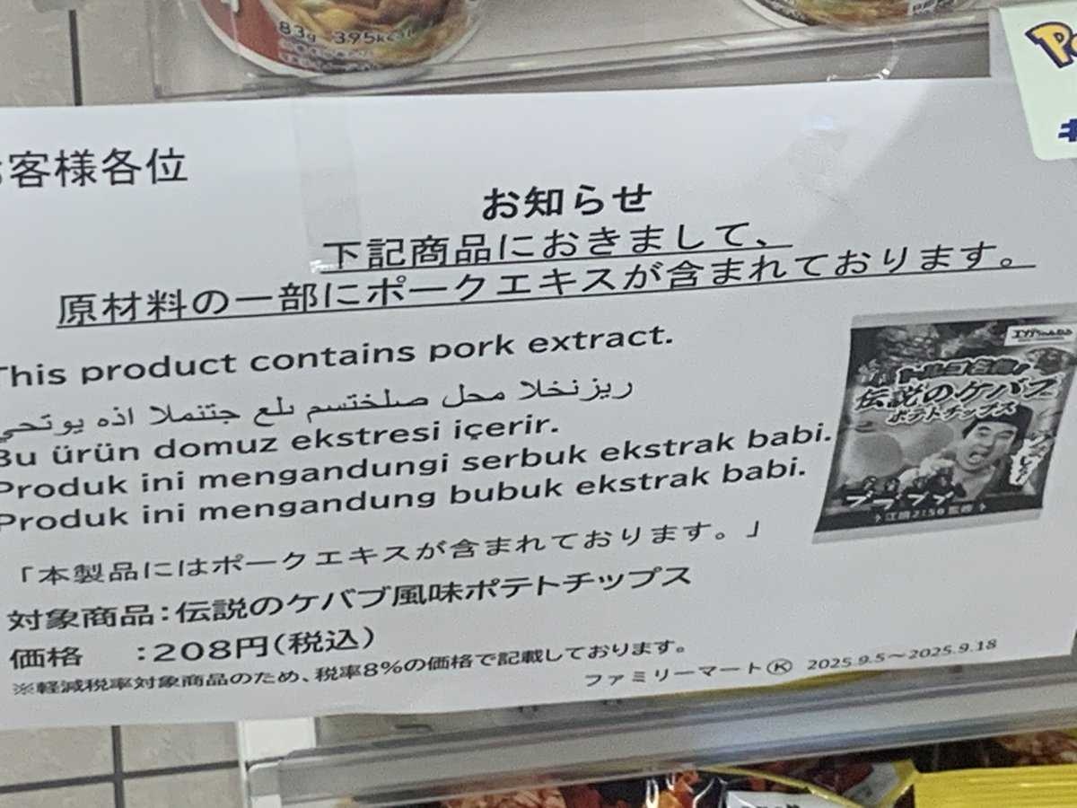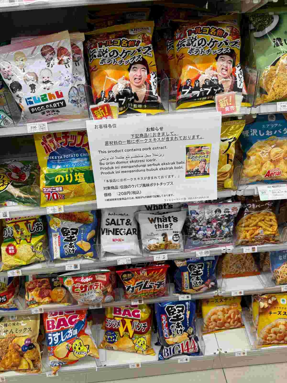 江頭2:50の豚肉エキス入りポテチ、警告文が貼られる