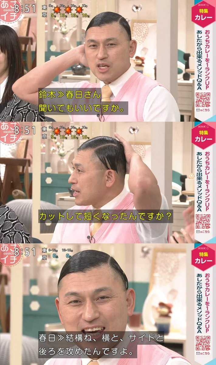 - 春日はともかく髪薄いのに刈り上げるやつってどういう心理なんやろ