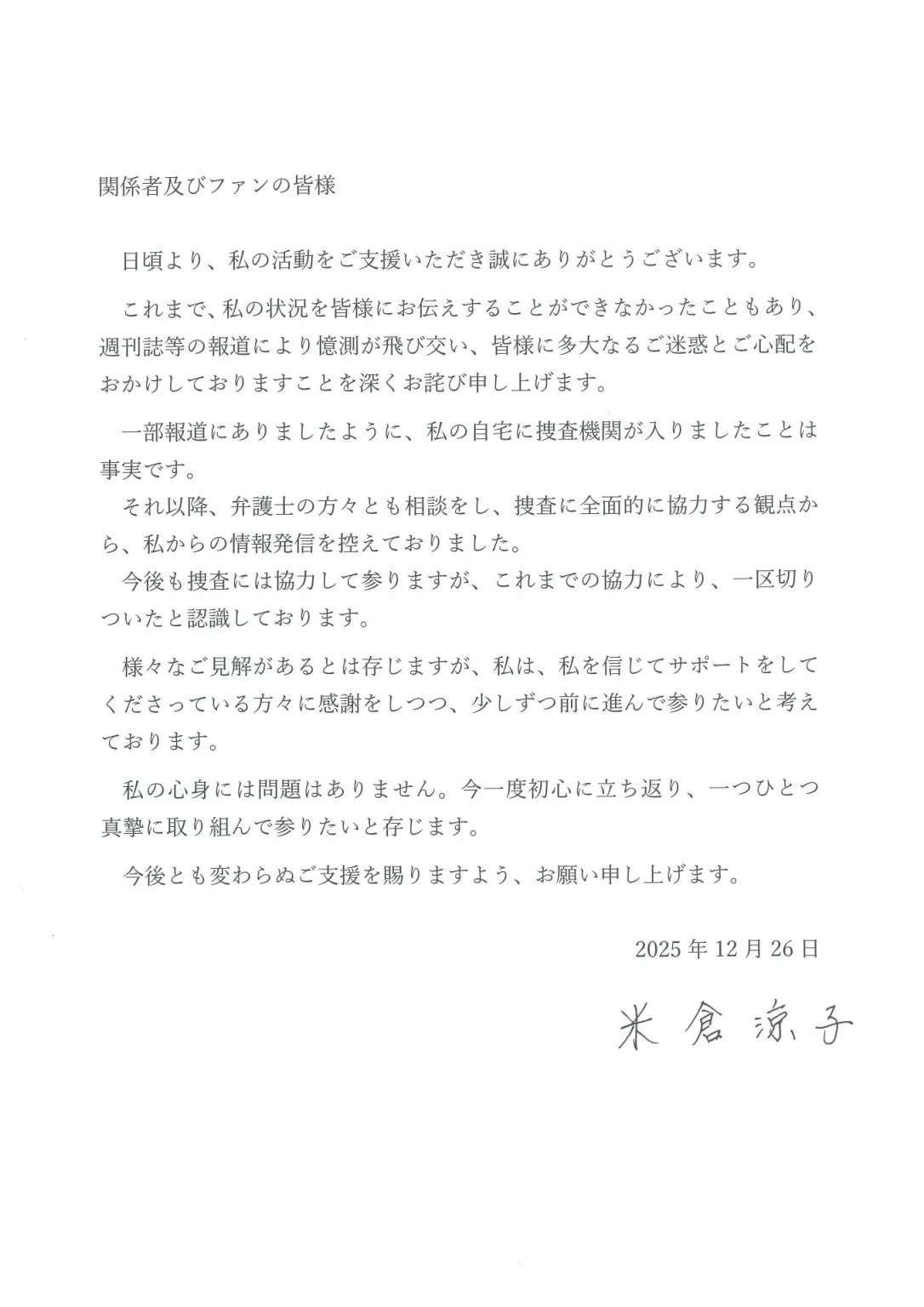米倉涼子さん周辺から出た大量のガスの件らしい