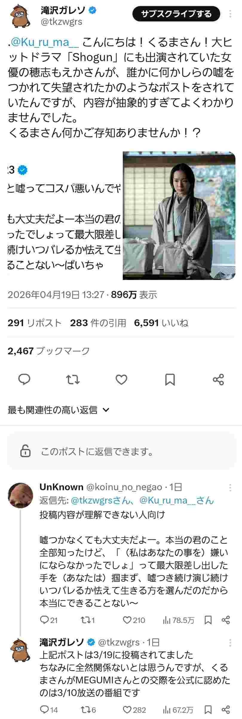 令和ロマンくるまさん、若手女優を食い散らかしてる模様