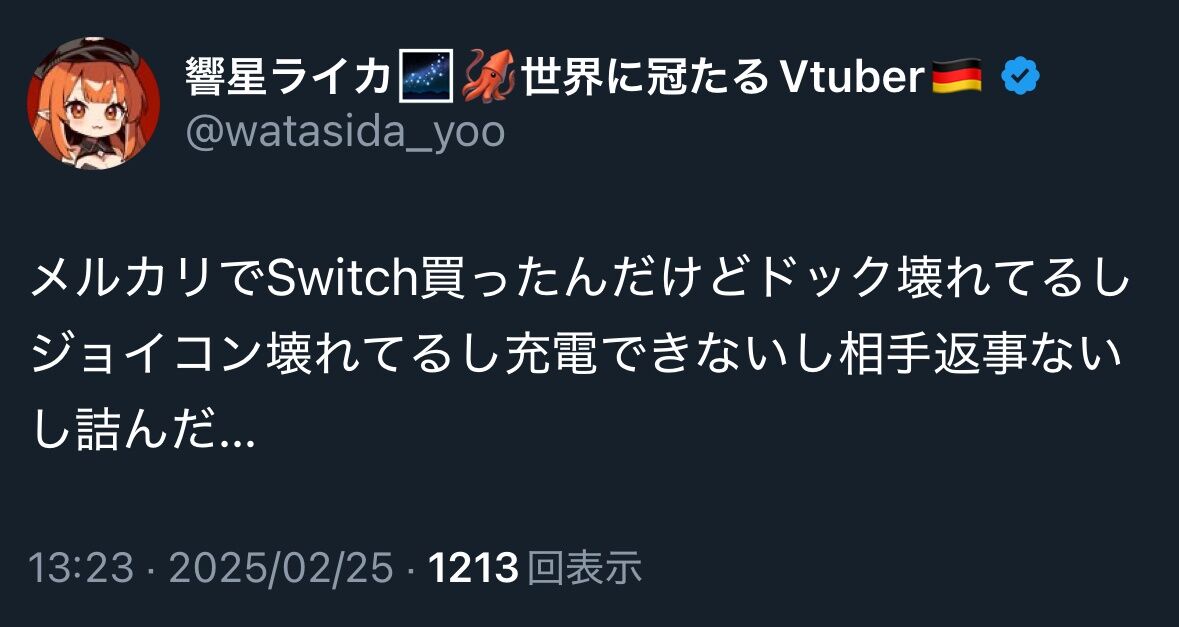 【失敗】世界に冠たるVTuber、 Switchを買うも不良品で詰む