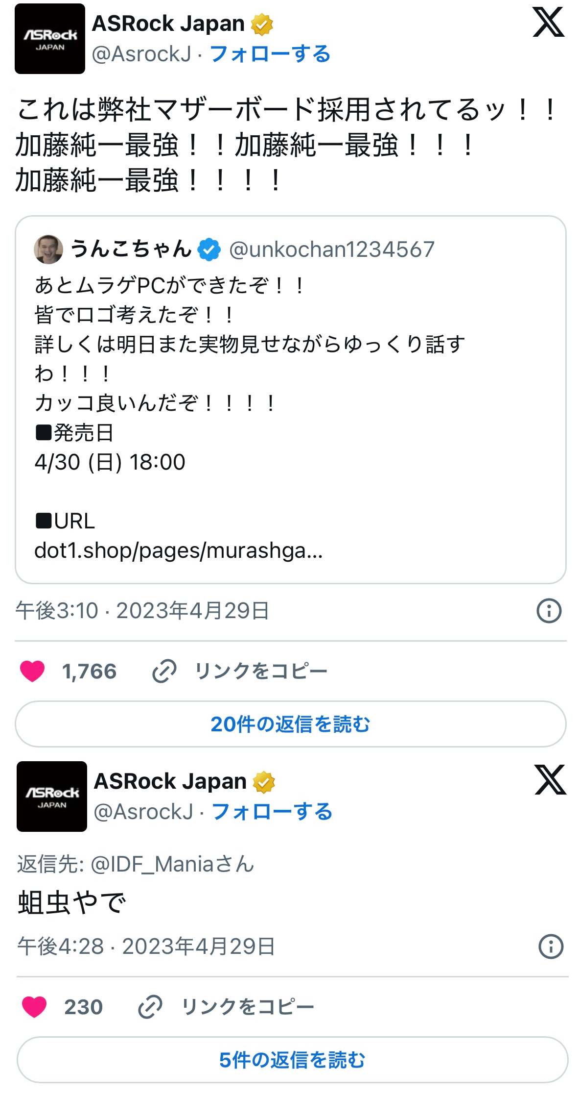 【悲報】加藤純一信者の台湾PCメーカー現る。ASRock「加藤純一最強」