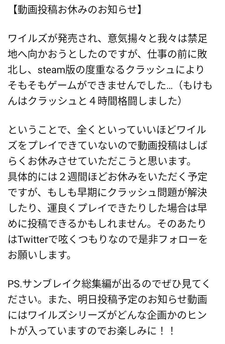 【最悪】遊べないワイルズ: YouTuberが動画投稿を休む理由...クラッシュ