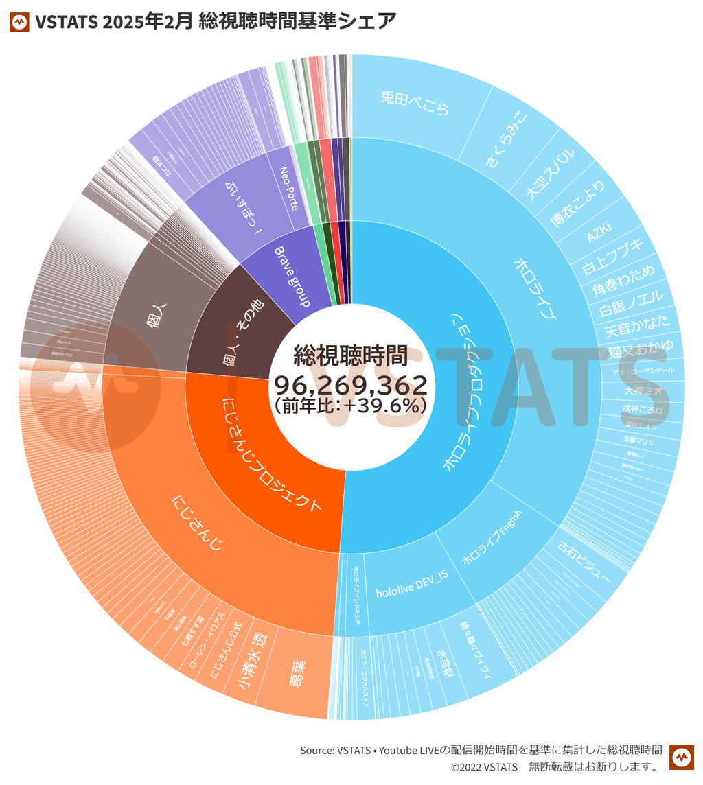【グラフ】現VTuber勢力図が公開!ぺこら強すぎ...半分以上がホロライブか...
