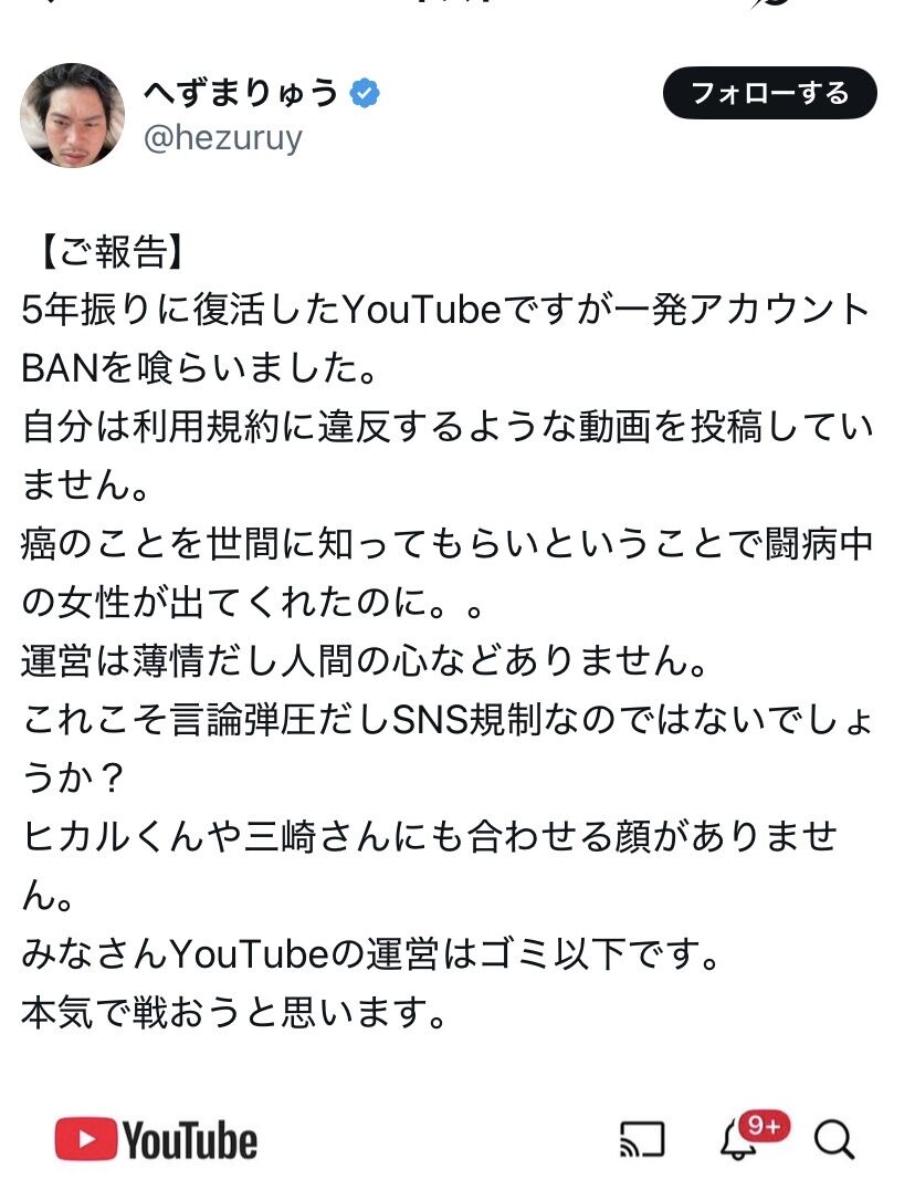 【悲報】へずま5年ぶりにYouTube復帰!...即引退へ…「本気で戦おうと思います」