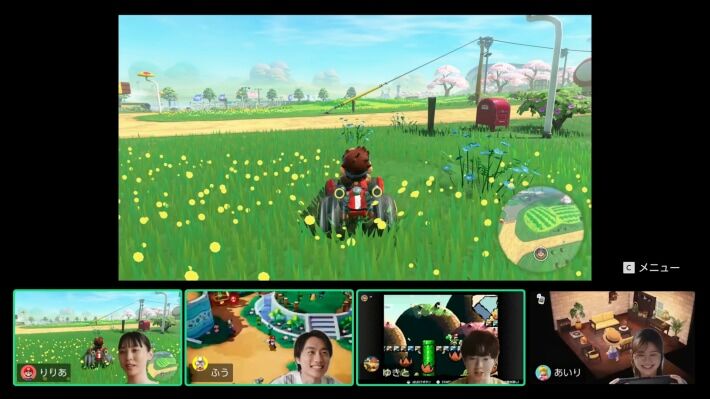 面白かったのは、Switch 2 の周辺機器として別売されるNintendo Switch 2 カメラをつなぐと自分の顔を見せることもできるんですが、ゲーム画面上に自分の姿を重ねて映すことによって、「ゲーム実況ごっこ」ができるんです。こういう嬉しさは、開発初期には予想できていなかったことです。