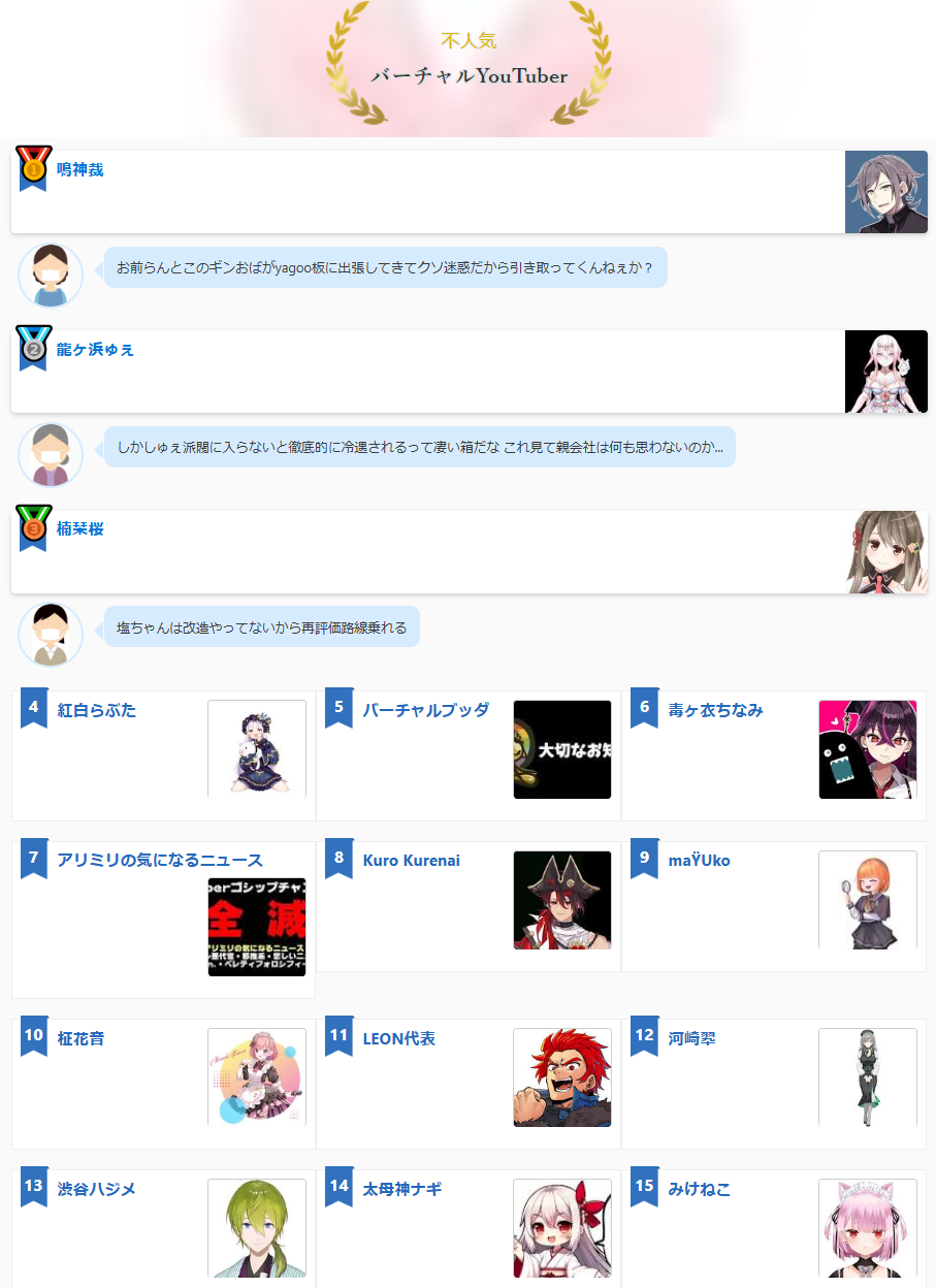 【衝撃】有名不人気Vtuberランキングがこれwww”みけねこ”以上がこんなにいるの!?