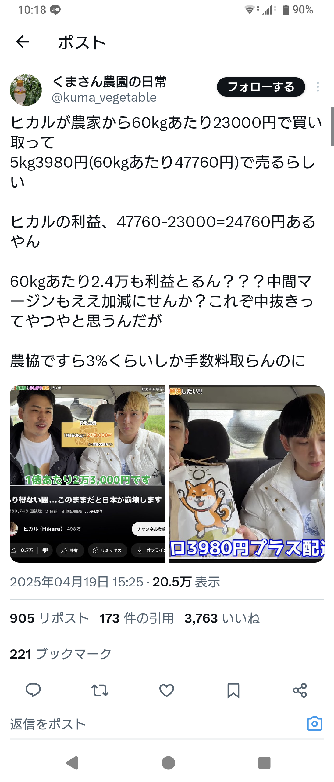 【悲報】YouTuberヒカル、米の転売を始める”中抜きバンザイ” 2025年4月22日 最終更新日時 : 2025年4月22日 ぐはっアンテナ 八木勇征の魅力を徹底解剖!彼の成長と影響 【芸能】堺正章が語る 人気ドラマ『西遊記』打ち切りの真相 「天竺に着く前に終わった…」 【LDH】三代目JSB今市隆二メンバー 活動自粛・・・ 【画像】井口裕香さん(37)、まだまだ全然イケるwwwwwwwwwwwwwwwwwwwwwwwwwwwwwwwww ジャングリア沖縄がここまで叩かれている理由がわかったwwwwwwwwww 【苦悩】奥菜恵「自分では清純派とも魔性とも思っていなかった」 【画像】吉岡里帆、理想の男性は「京都の人より九州男児が好き」 【画像】広末涼子さん(45)の近影 【画像】ジャングリア沖縄🌿🦖、ファンもアンチも黙らせてしまう 元坂道?アイドルがデビュー 【悲報】YouTuberヒカル、米の転売を始める”中抜きバンザイ” ヒカル (YouTuber) ヒカル(1991年〈平成3年〉5月29日 -)は、日本の男性YouTuber、歌手、実業家。本名は前田 圭太(まえだ けいた)。血液型はO型。兵庫県神崎郡市川町出身。 髪の色が半分黒・半分金髪という独自のヘアスタイルや、高速なマシンガントークが特徴とされる。ReZARDというアパレルブランドを創立し、筆頭株主である。関西弁を話す。… 43キロバイト (5,575 語) - 2025年3月28日 (金) 03:11 (出典 i.ytimg.com) (出典 【悲報】米を安く届けたいと願っていたヒカルさん、米の転売を始めてしまう……) 1 それでも動く名無し :2025/04/20(日) 10:20:23.82 ID:SZ/kIeds0 (出典 i.imgur.com) ↓ (出典 i.imgur.com) (出典 【悲報】米を安く届けたいと願っていたヒカルさん、米の転売を始めてしまう……) 続きを読む 続きを見る 八木勇征の魅力を徹底解剖!彼の成長と影響 【芸能】堺正章が語る 人気ドラマ『西遊記』打ち切りの真相 「天竺に着く前に終わった…」 【LDH】三代目JSB今市隆二メンバー 活動自粛・・・ 【画像】井口裕香さん(37)、まだまだ全然イケるwwwwwwwwwwwwwwwwwwwwwwwwwwwwwwwww ジャングリア沖縄がここまで叩かれている理由がわかったwwwwwwwwww 【苦悩】奥菜恵「自分では清純派とも魔性とも思っていなかった」 【画像】吉岡里帆、理想の男性は「京都の人より九州男児が好き」 【画像】広末涼子さん(45)の近影 関連記事 関連記事はありません。