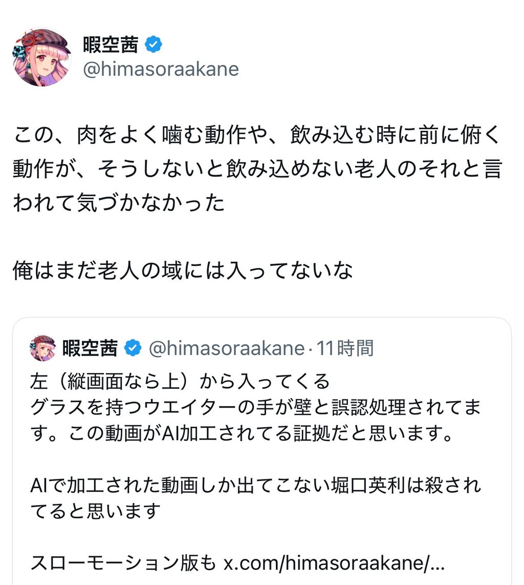 【食通】暇空茜、肉咀嚼警察になってしまう「肉をよく噛むのは老人」