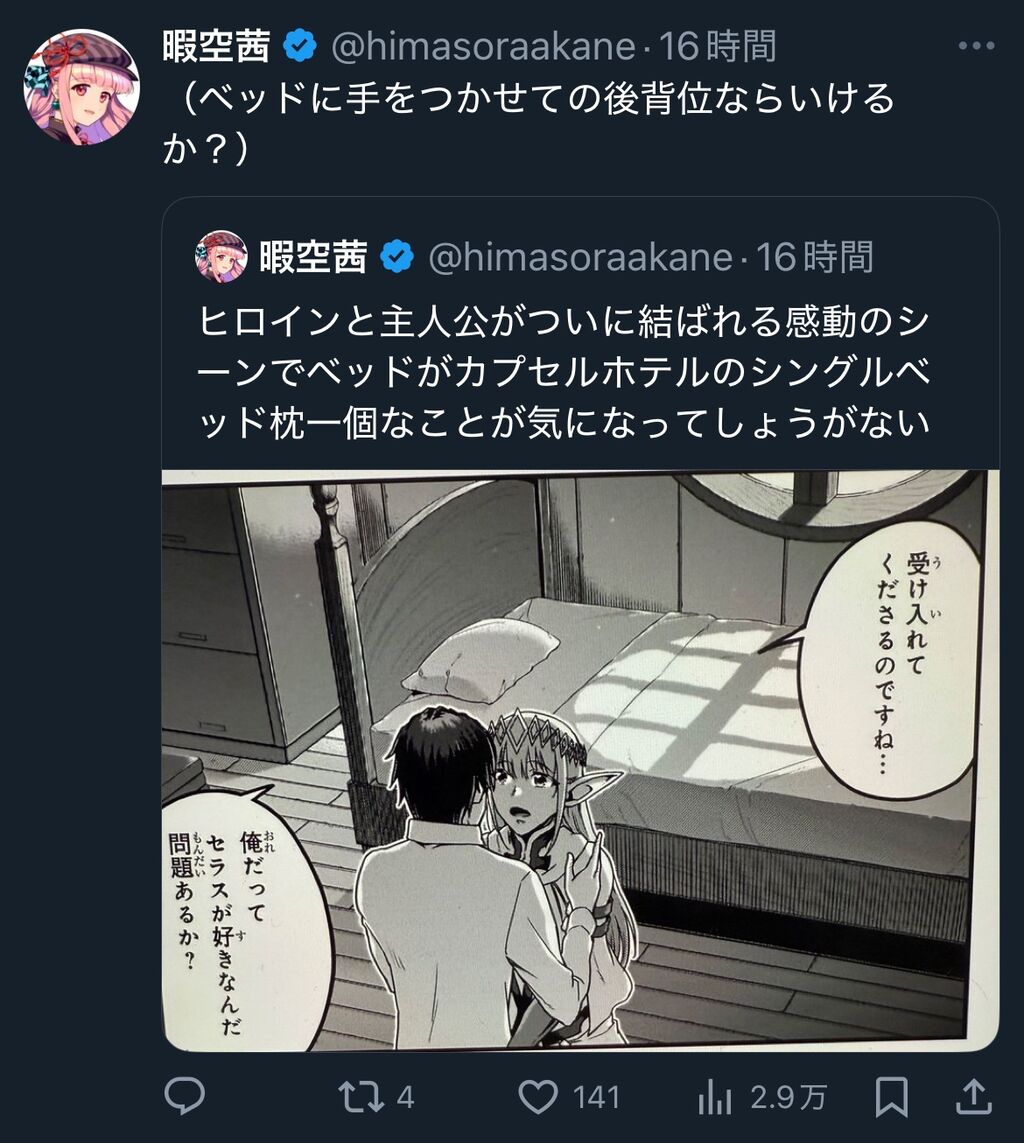 【悲報】暇空茜氏の投稿で、童貞説浮上!?「カプセルホテルにダブルベットは無いよ…」短足説まで