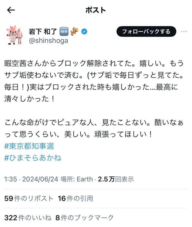 【新生姜】暇空茜ファン、ブロ解を喜び声援を送る