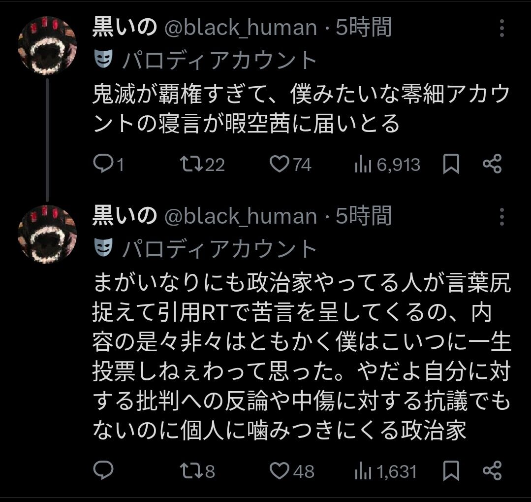 【悲報】政治家・暇空茜氏、鬼滅キッズに噛み付く「暇アノンに粘着されそう・・・」