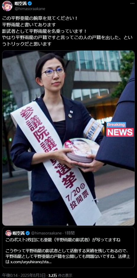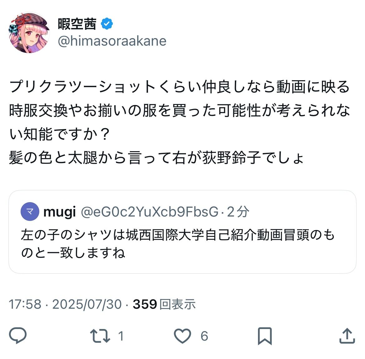 【探偵】暇空茜(43)、年下女性(31)の太ももに絶賛粘着中~眉毛や素顔も精密分析「太ももみりゃわかんだろ👁️」