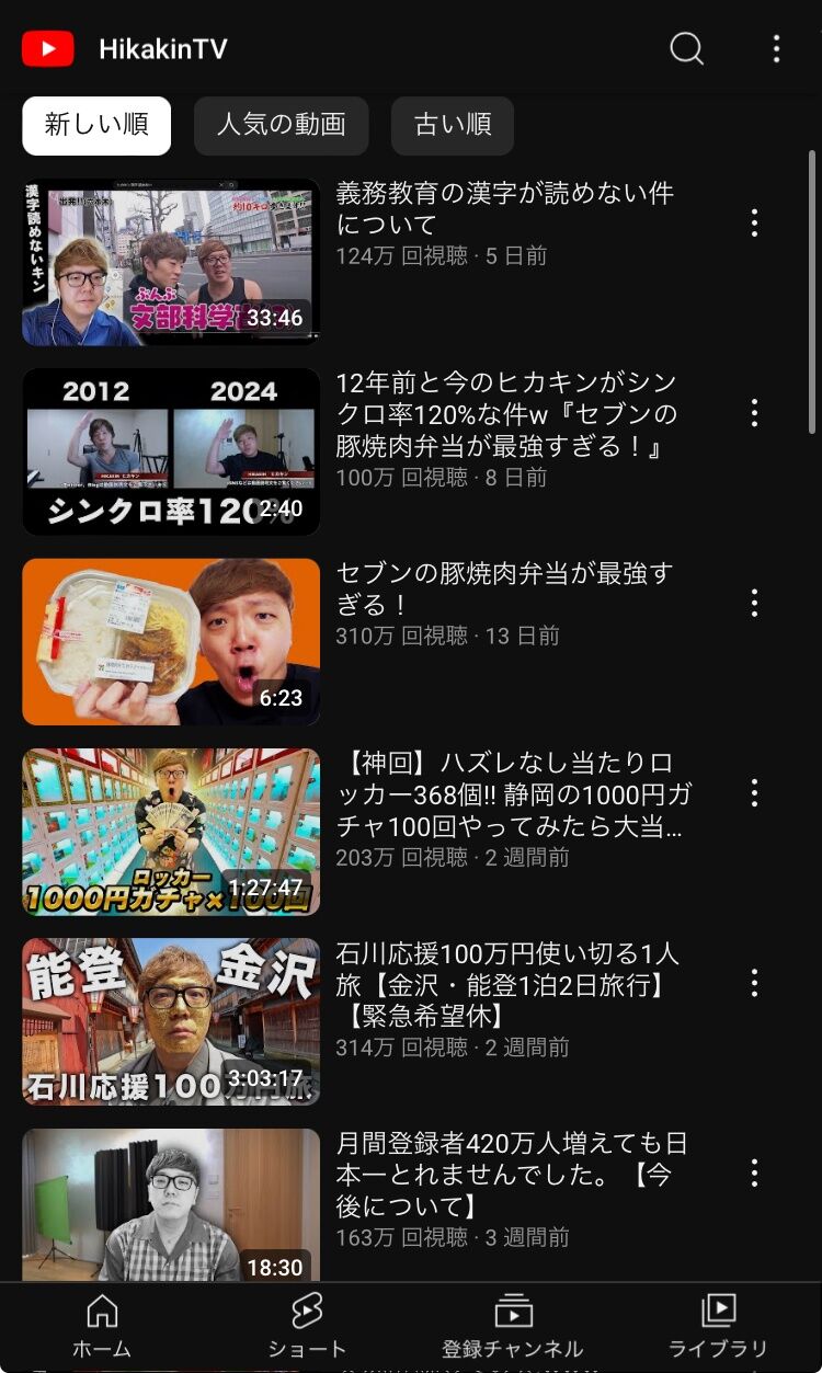 |  | HIKAKIN(ヒカキン、1989年〈平成元年〉4月21日 - )は、日本の男性YouTuber、ヒューマンビートボクサー。UUUM株式会社所属のファウンダー、最高顧問、元スキージャンプ選手。血液型はO型。実兄はYouTuberのSEIKIN。また、HIKAKIN & SEIKINのメンバーである。… 117キロバイト (12,342 語) - 2024年6月27日 (木) 11:10 |
