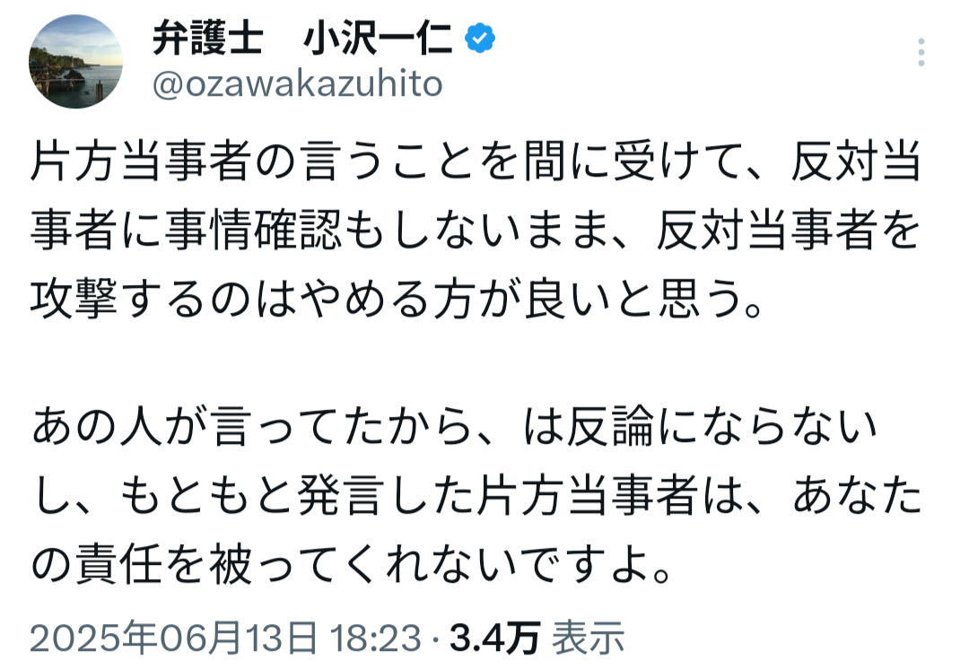 小沢一仁弁護士のモノマネは、やめる方が良いと思う。