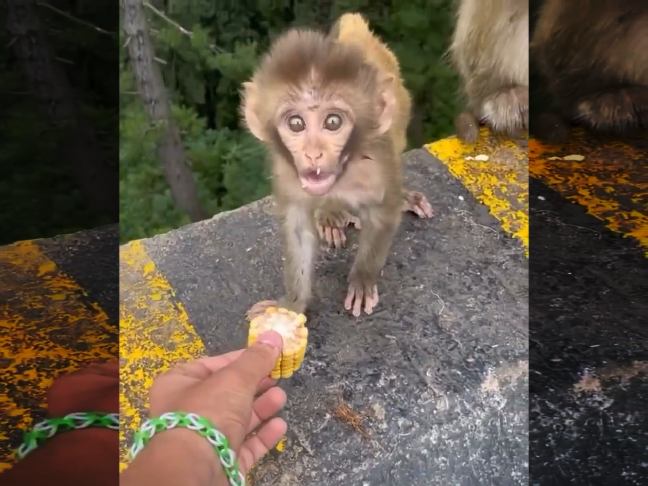 【動画】餌あげたら...子サルが崖から転落!?母猿は大激怒