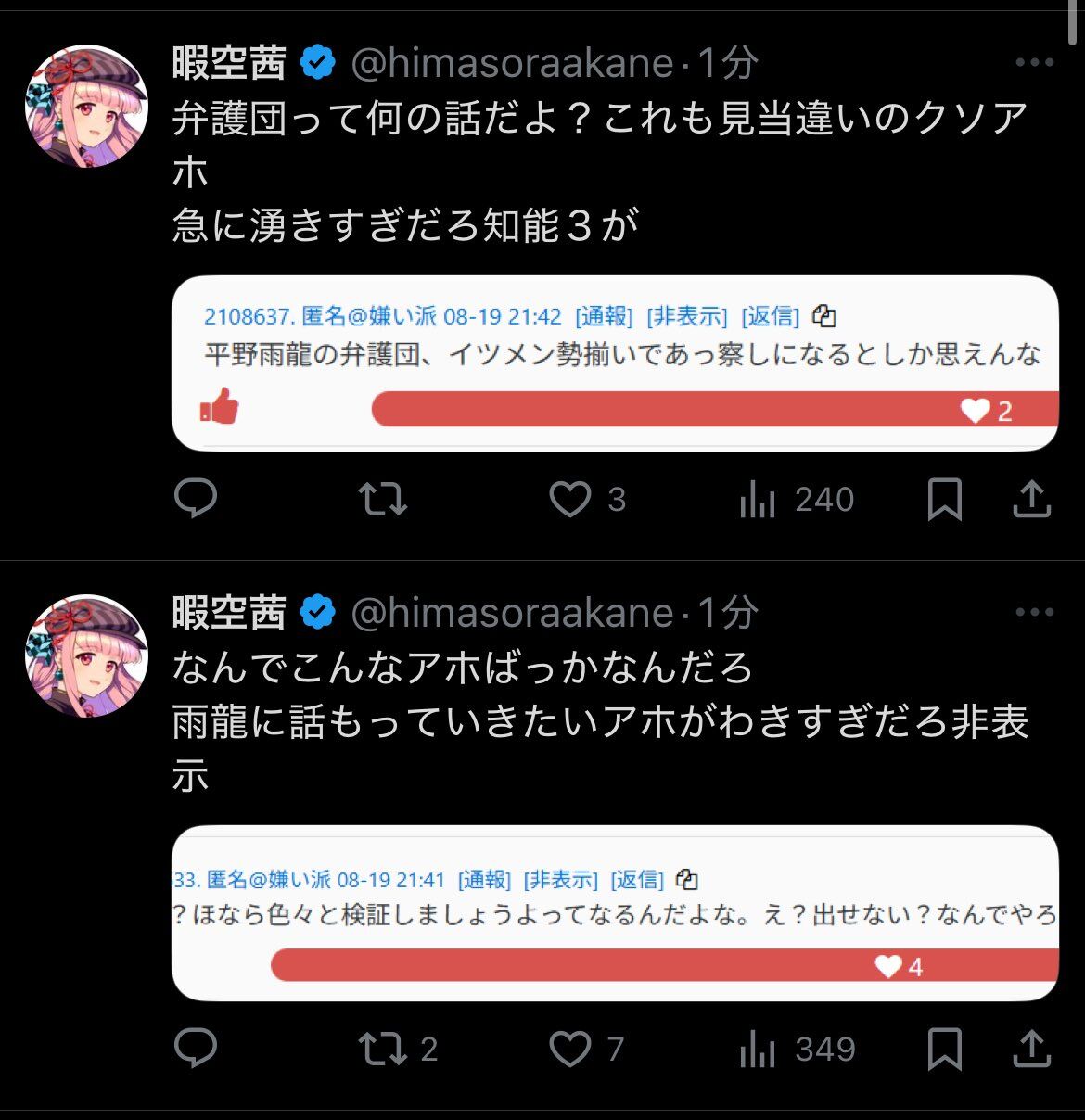 【朗報】暇空茜氏の心はいつも平穏。平野雨龍に訴えられそうでも一切動揺せず!全くビビらない