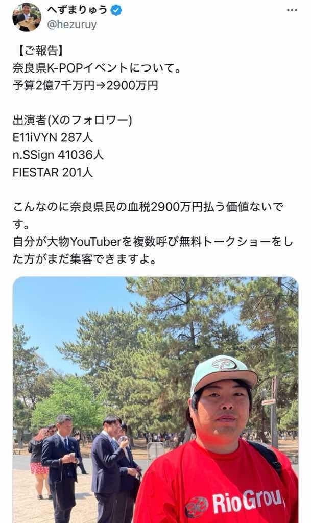 【奈良県】税金2900万で謎のK-POPアイドル呼ぶ。へずま市議、奈良県イベントを批判