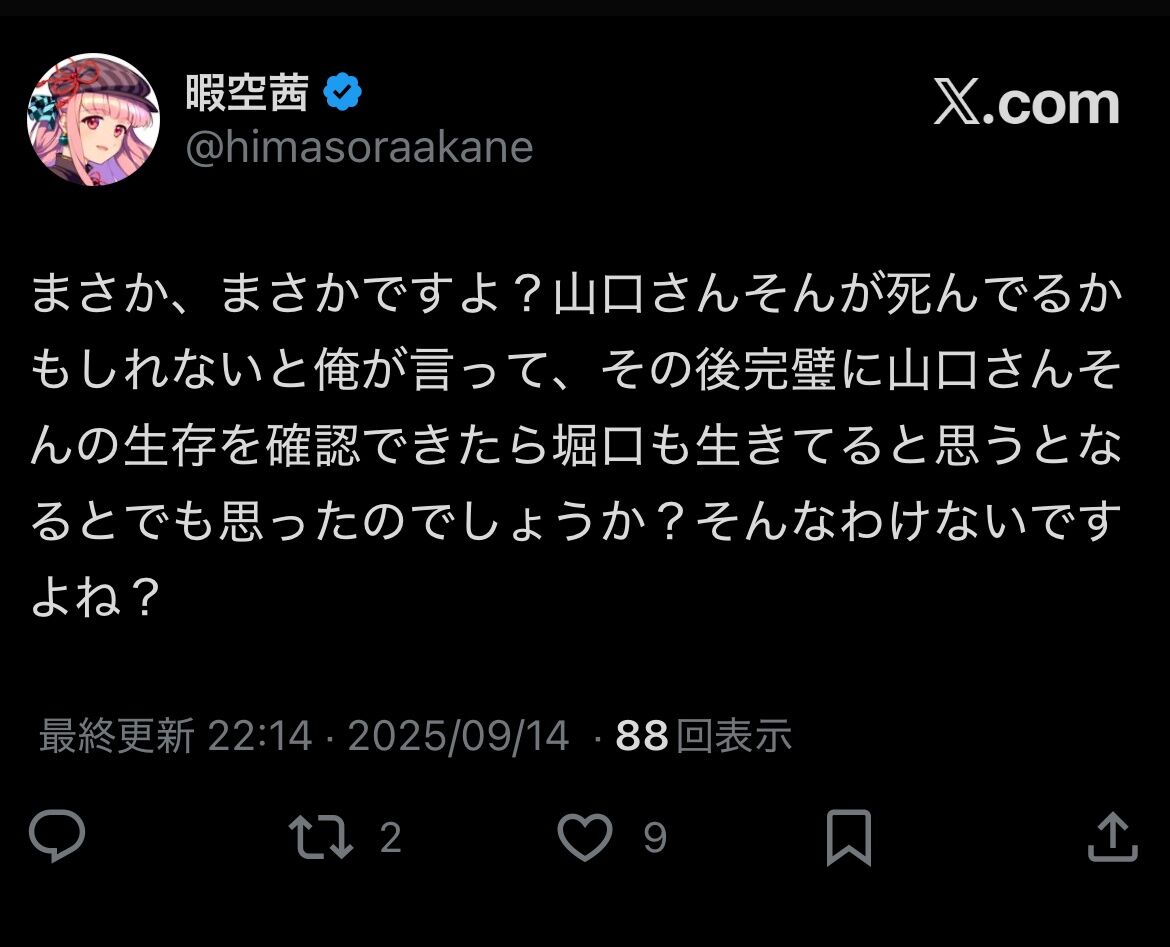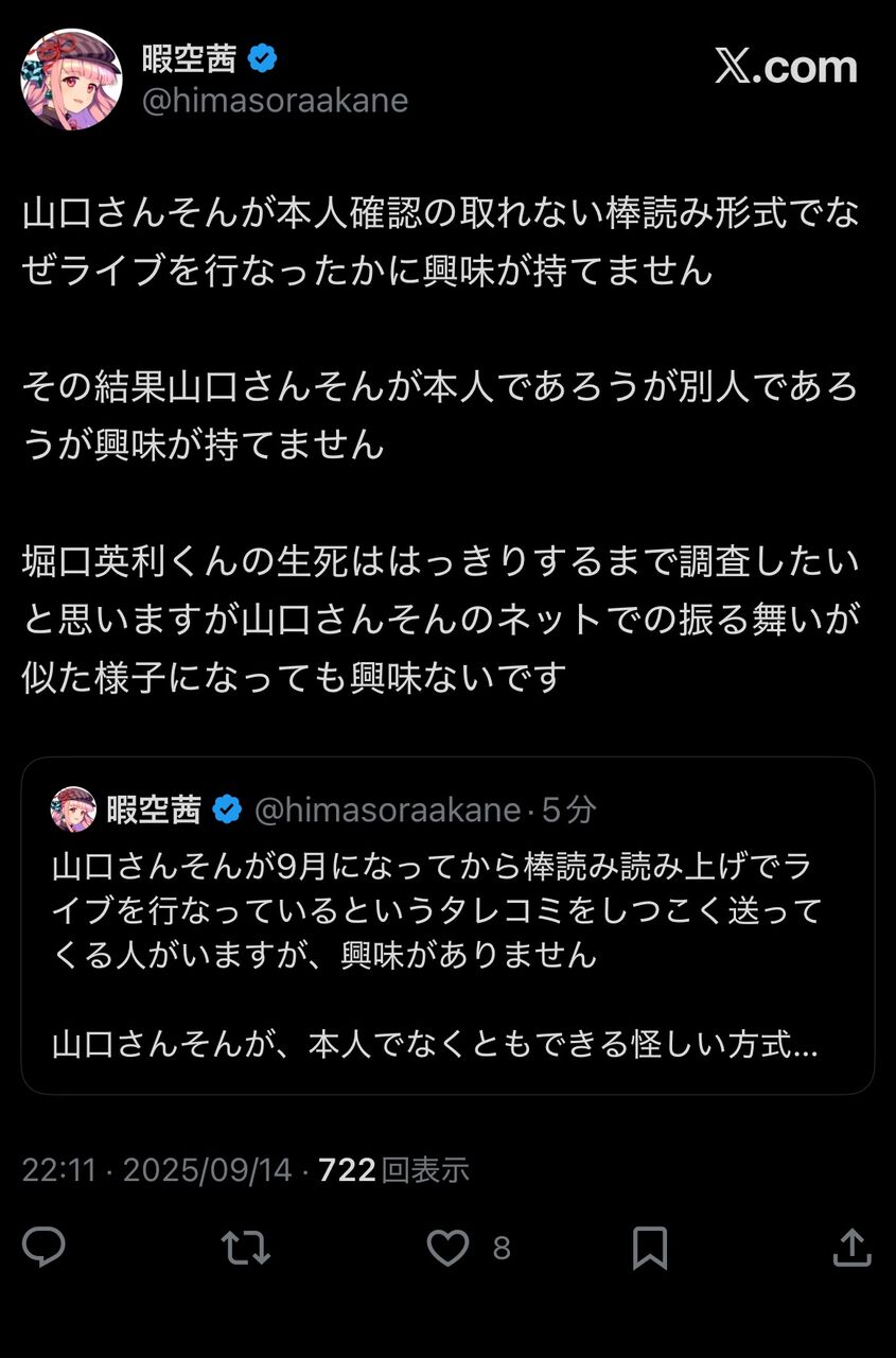 堀口英利:暇空茜氏が死んでいると主張している。一般の大学生