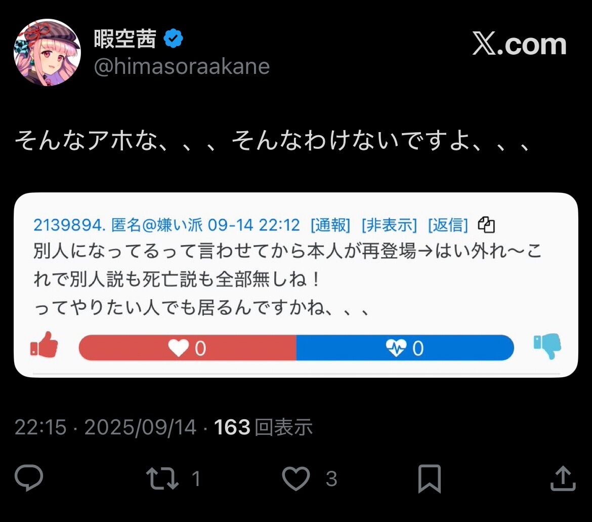 【悲報】暇空さん、“興味ない”と言いつつ気にしてる件w「ちらっと見たけど」