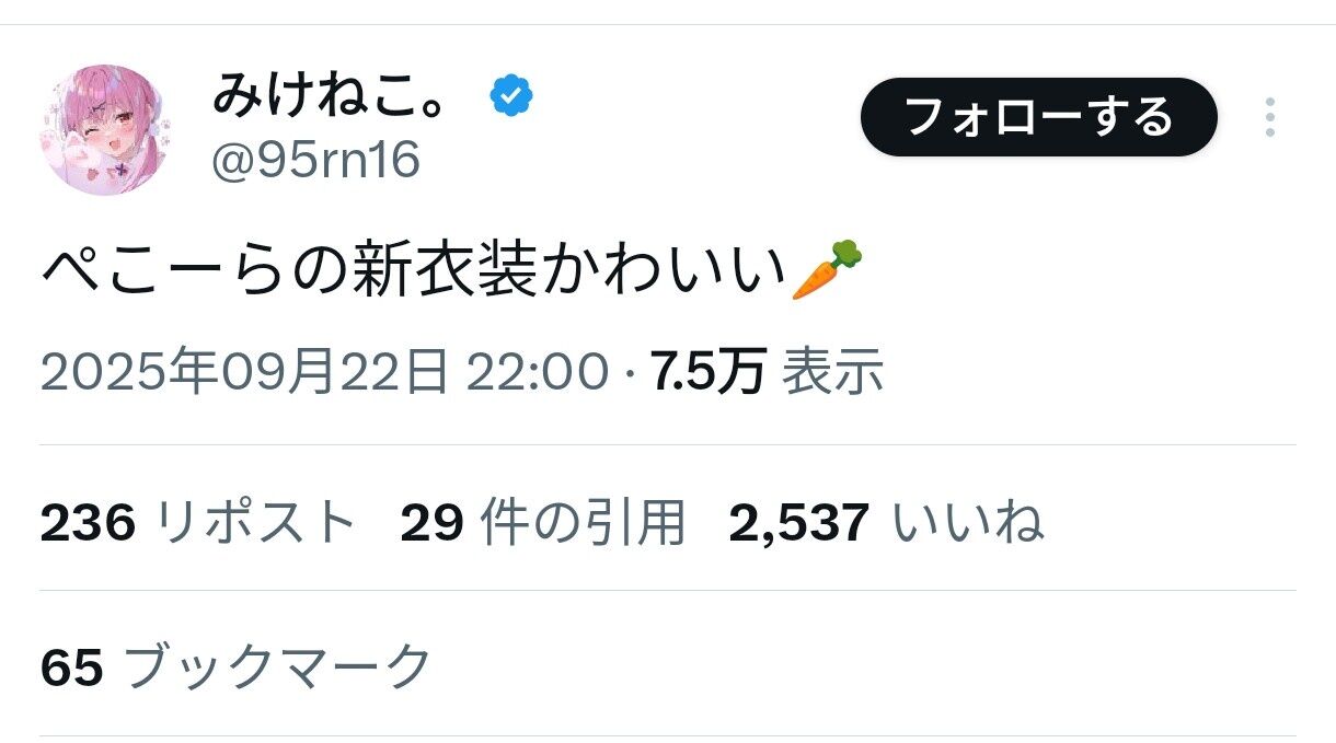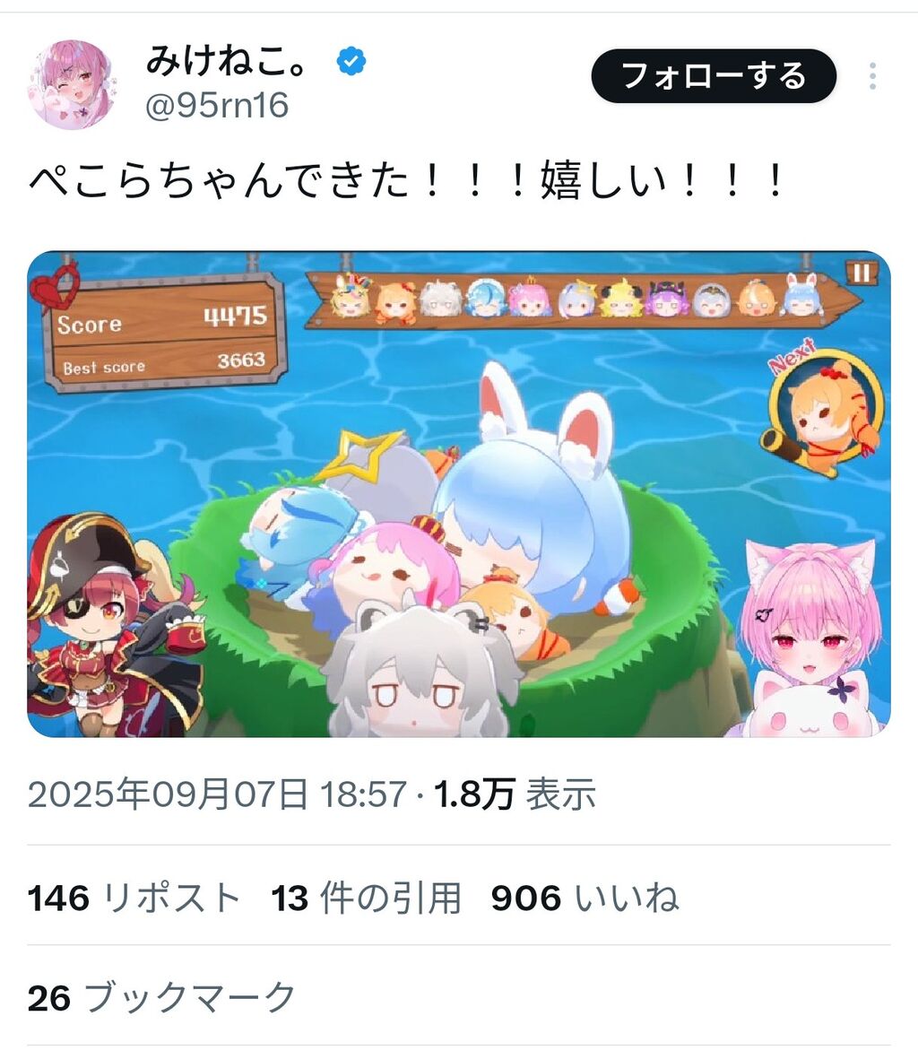 【元ホロ】みけねこ、ぺこらへの好き好きアピールにネット民ざわつく
