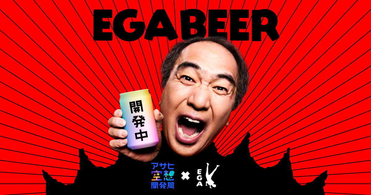 アサヒビール株式会社による新商品のテスト販売サイト「アサヒ空想開発局」で本日9月26日(金)10時、江頭2:50との共同開発で生まれたビール「アサヒ EGA BEER(アサヒエガビアー)」が数量限定発売。江頭が出演するWebCM「誕生!EGA BEER」も公開された。