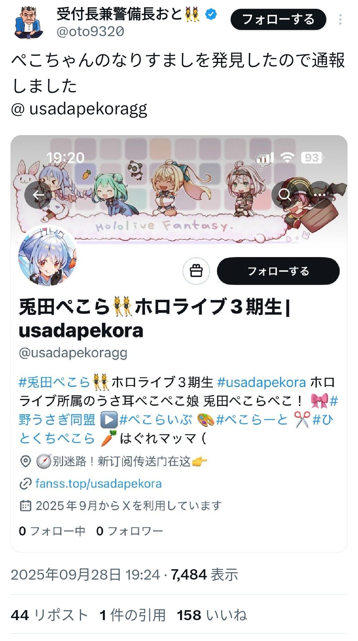 【悲報】兎田ぺこらの偽物、0フォロー0フォロワーで堂々登場──5ch民『習近平ぺこって書いてみ』