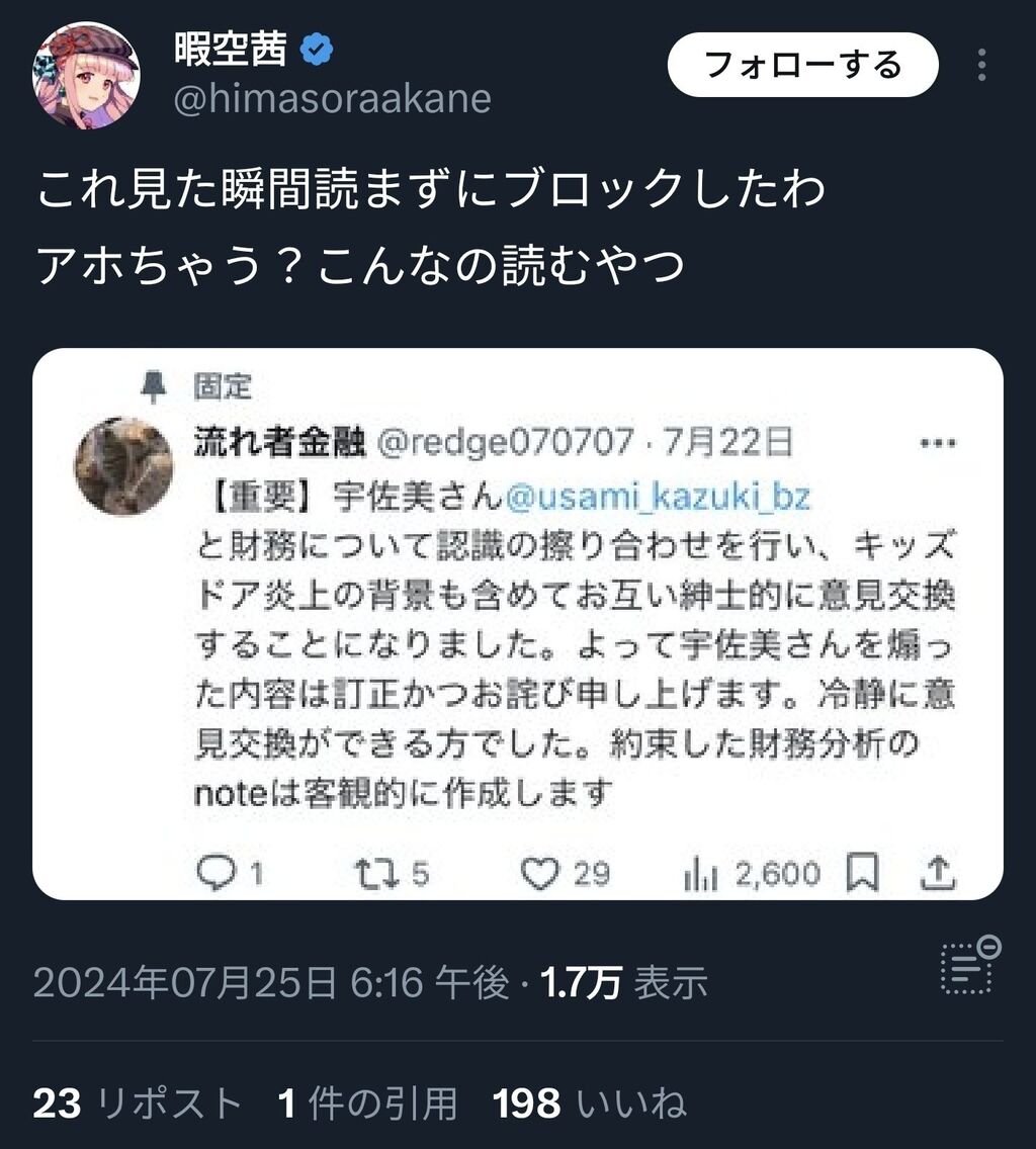 【正論】暇空茜を検証する奴はバカ!即ブロック