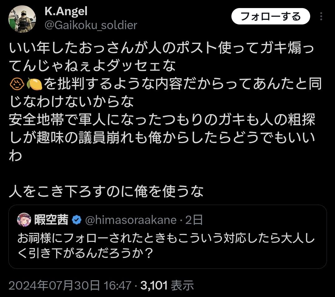 【悲報】暇空茜「人の粗探しが趣味」のおっさんと言われちゃう