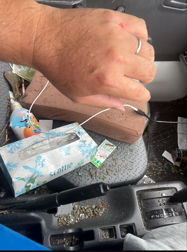 「【ご報告】交通事故を起こしてしまった」と切り出し、車内で顔をしかめる写真とぐちゃぐちゃになった助手席の写真をアップ。続けて「下り道を走行中に後方の車にライトで煽られ視界が見えずらくなりスリップして畑に突っ込み5回横転しました」と報告した。