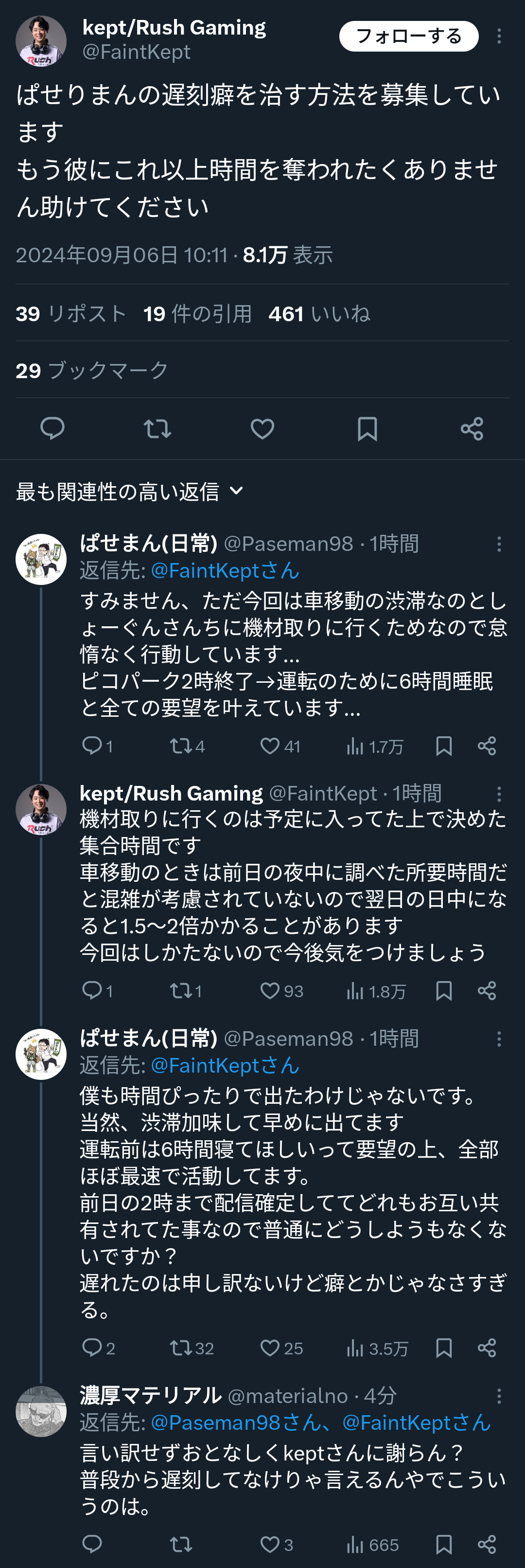 【物議】プロゲーマー、遅刻注意に逆ギレで炎上!界隈の品位、更に下がる 2024年9月7日 最終更新日時 : 2024年9月7日 ぐはっアンテナ 八木勇征の魅力を徹底解剖!彼の成長と影響 【芸能】堺正章が語る 人気ドラマ『西遊記』打ち切りの真相 「天竺に着く前に終わった…」 【LDH】三代目JSB今市隆二メンバー 活動自粛・・・ 【画像】井口裕香さん(37)、まだまだ全然イケるwwwwwwwwwwwwwwwwwwwwwwwwwwwwwwwww ジャングリア沖縄がここまで叩かれている理由がわかったwwwwwwwwww 【苦悩】奥菜恵「自分では清純派とも魔性とも思っていなかった」 【画像】吉岡里帆、理想の男性は「京都の人より九州男児が好き」 【画像】広末涼子さん(45)の近影 【画像】ジャングリア沖縄🌿🦖、ファンもアンチも黙らせてしまう 元坂道?アイドルがデビュー 【物議】プロゲーマー、遅刻注意に逆ギレで炎上!界隈の品位、更に下がる 大乱闘スマッシュブラザーズシリーズ 大乱闘スマッシュブラザーズシリーズ(だいらんとうスマッシュブラザーズシリーズ、英題:Super Smash Bros. series)は、ハル研究所が開発して任天堂が発売した対戦アクションゲームのシリーズ名である。公式略称は「スマブラ」。ディレクターは第1作より一貫して『星のカービィ』の生みの親でもある桜井政博が担当している。… 129キロバイト (13,463 語) - 2024年8月28日 (水) 10:34 プロゲーマー プロゲーマー(professional gamer)とは、コンピューターゲームの大会などに出場して賞金を得る者、eスポーツのトーナメントに出場している者のこと。 eスポーツという用語が誕生してからは、eスポーツプレイヤー(eSports player)、eスポーツアスリート(eSports… 27キロバイト (3,196 語) - 2024年6月7日 (金) 00:30 (出典 www.scarz.net) (出典 スマブラプロゲーマー、遅刻を注意されてブチギレwwwww) 1 以下、5ちゃんねるからVIPがお送りします :2024/09/07(土) 00:24:43.147 ID:xHX0QP9F0 https://x.com/FaintKept/status/1831862665217794496(出典 dec.2chan.net) (出典 dec.2chan.net) (出典 スマブラプロゲーマー、遅刻を注意されてブチギレwwwww) 続きを読む 続きを見る 八木勇征の魅力を徹底解剖!彼の成長と影響 【芸能】堺正章が語る 人気ドラマ『西遊記』打ち切りの真相 「天竺に着く前に終わった…」 【LDH】三代目JSB今市隆二メンバー 活動自粛・・・ 【画像】井口裕香さん(37)、まだまだ全然イケるwwwwwwwwwwwwwwwwwwwwwwwwwwwwwwwww ジャングリア沖縄がここまで叩かれている理由がわかったwwwwwwwwww 【苦悩】奥菜恵「自分では清純派とも魔性とも思っていなかった」 【画像】吉岡里帆、理想の男性は「京都の人より九州男児が好き」 【画像】広末涼子さん(45)の近影 関連記事 関連記事はありません。