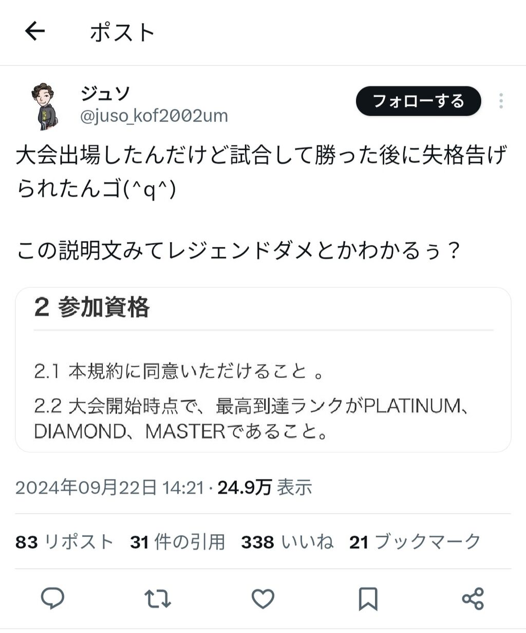 【悲報】大会で勝利後に失格になった”格闘ゲーマー”嘆く