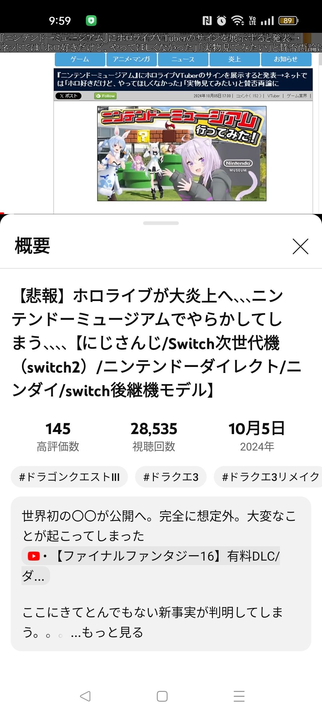 【悲報】ホロライブ、任天堂信者から大炎上と虚報を流される