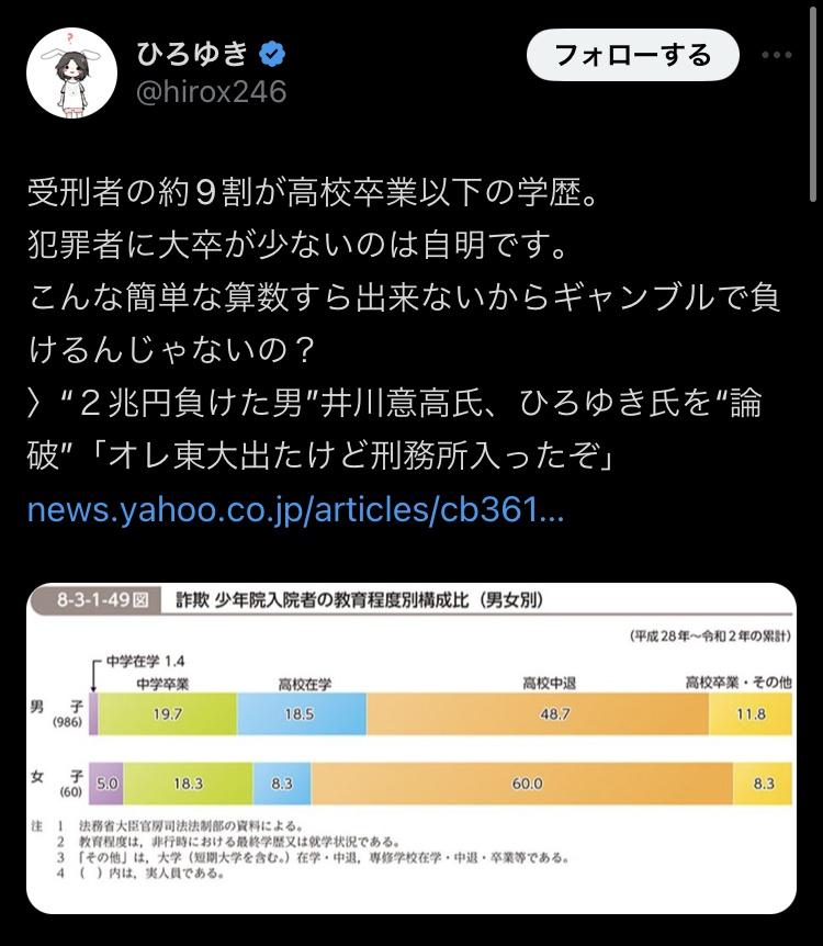 【元論破王】ひろゆき、添付画像を誤り論破されてしまう 2024年10月16日 最終更新日時 : 2024年10月16日 ぐはっアンテナ 八木勇征の魅力を徹底解剖!彼の成長と影響 【芸能】堺正章が語る 人気ドラマ『西遊記』打ち切りの真相 「天竺に着く前に終わった…」 【LDH】三代目JSB今市隆二メンバー 活動自粛・・・ 【画像】井口裕香さん(37)、まだまだ全然イケるwwwwwwwwwwwwwwwwwwwwwwwwwwwwwwwww ジャングリア沖縄がここまで叩かれている理由がわかったwwwwwwwwww 【苦悩】奥菜恵「自分では清純派とも魔性とも思っていなかった」 【画像】吉岡里帆、理想の男性は「京都の人より九州男児が好き」 【画像】広末涼子さん(45)の近影 【画像】ジャングリア沖縄🌿🦖、ファンもアンチも黙らせてしまう 元坂道?アイドルがデビュー 【元論破王】ひろゆき、添付画像を誤り論破されてしまう 西村博之 (ひろゆきからのリダイレクト) 2022年6月25日、日本国政府にひろゆきが助言を行ったことが明らかになった。日本国政府が同年10月に予定した『デジタルの日』制定をめぐり、内閣官房のIT総合戦略室によれば「(ひろゆきには)デジタルを活用した発信に知見がある」ことからひろゆきが起用された。 同日のひろゆきの説明では、ひろゆき… 394キロバイト (58,889 語) - 2024年10月11日 (金) 12:12 (出典 www.nikkansports.com) (出典 ひろゆきさん、たかが凡ミスで負けてしまう…) 1 以下、5ちゃんねるからVIPがお送りします :2024/10/12(土) 17:38:42.694 ID:HeqguUGs0 嘘だろ?早く反論してくれ… (出典 i.imgur.com) ↓ (出典 i.imgur.com) (出典 ひろゆきさん、たかが凡ミスで負けてしまう…) 続きを読む 続きを見る 八木勇征の魅力を徹底解剖!彼の成長と影響 【芸能】堺正章が語る 人気ドラマ『西遊記』打ち切りの真相 「天竺に着く前に終わった…」 【LDH】三代目JSB今市隆二メンバー 活動自粛・・・ 【画像】井口裕香さん(37)、まだまだ全然イケるwwwwwwwwwwwwwwwwwwwwwwwwwwwwwwwww ジャングリア沖縄がここまで叩かれている理由がわかったwwwwwwwwww 【苦悩】奥菜恵「自分では清純派とも魔性とも思っていなかった」 【画像】吉岡里帆、理想の男性は「京都の人より九州男児が好き」 【画像】広末涼子さん(45)の近影 関連記事 関連記事はありません。