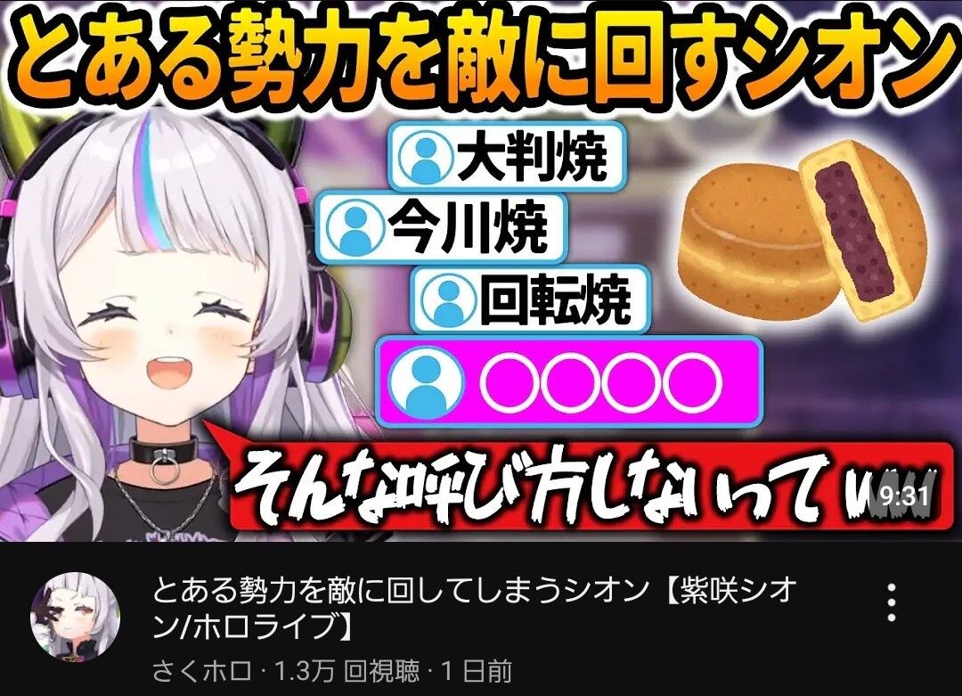 【悲報】紫咲シオン:世の中を敵に回す「今川焼き、大判焼きしか認めない」