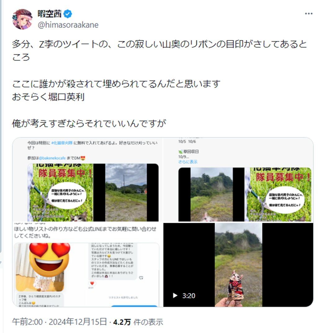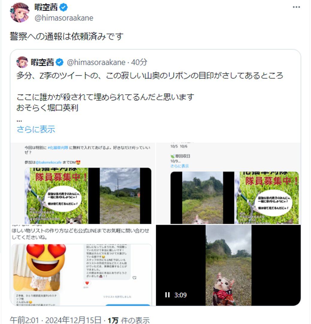 【妄想110番】暇空茜氏「堀口英利が殺され山に埋められてる」と警察へ