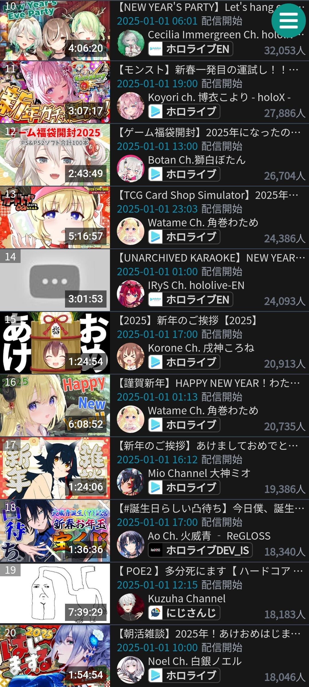【年始配信】にじさんじ不人気露呈!ホロライブ席捲する...19位に葛葉1人、全てホロ色に