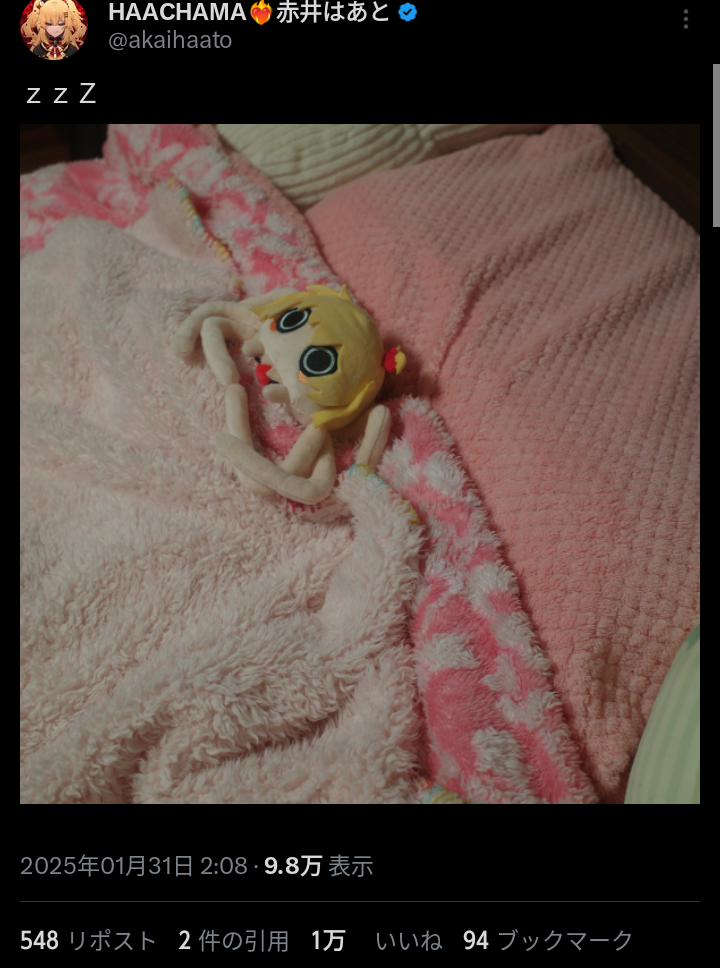 【金髪なのに】赤井はあと、寝具写真公開で…黒い毛が発見される 2025年2月2日 最終更新日時 : 2025年2月2日 ぐはっアンテナ 八木勇征の魅力を徹底解剖!彼の成長と影響 【芸能】堺正章が語る 人気ドラマ『西遊記』打ち切りの真相 「天竺に着く前に終わった…」 【LDH】三代目JSB今市隆二メンバー 活動自粛・・・ 【画像】井口裕香さん(37)、まだまだ全然イケるwwwwwwwwwwwwwwwwwwwwwwwwwwwwwwwww ジャングリア沖縄がここまで叩かれている理由がわかったwwwwwwwwww 【苦悩】奥菜恵「自分では清純派とも魔性とも思っていなかった」 【画像】吉岡里帆、理想の男性は「京都の人より九州男児が好き」 【画像】広末涼子さん(45)の近影 【画像】ジャングリア沖縄🌿🦖、ファンもアンチも黙らせてしまう 元坂道?アイドルがデビュー 【金髪なのに】赤井はあと、寝具写真公開で…黒い毛が発見される 赤井はあと 誕生日は8月10日。愛称は「はあちゃま」など。挨拶は「はあちゃまっちゃま〜!! ワールドワイドな最強アイドル、はあちゃまこと赤井はあとです」など。 キャラクターデザインはイラストレーターのはる雪、Live2Dモデルはfumi、3Dモデルはぽんぷ長がそれぞれ担当した。ファンの愛称は「はあとん」。… 25キロバイト (2,942 語) - 2025年1月15日 (水) 14:12 (出典 images.goodsmile.info) (出典 【画像】VTuberさん、金髪のはずなのに黒い髪の毛が写ってしまう!!) 1 以下、5ちゃんねるからVIPがお送りします :2025/01/31(金) 11:04:58.288 ID:KuGNZXgZ0 https://x.com/akaihaato/status/1885012139901157739(出典 i.imgur.com) (出典 i.imgur.com) (出典 【画像】VTuberさん、金髪のはずなのに黒い髪の毛が写ってしまう!!) 続きを読む 続きを見る 八木勇征の魅力を徹底解剖!彼の成長と影響 【芸能】堺正章が語る 人気ドラマ『西遊記』打ち切りの真相 「天竺に着く前に終わった…」 【LDH】三代目JSB今市隆二メンバー 活動自粛・・・ 【画像】井口裕香さん(37)、まだまだ全然イケるwwwwwwwwwwwwwwwwwwwwwwwwwwwwwwwww ジャングリア沖縄がここまで叩かれている理由がわかったwwwwwwwwww 【苦悩】奥菜恵「自分では清純派とも魔性とも思っていなかった」 【画像】吉岡里帆、理想の男性は「京都の人より九州男児が好き」 【画像】広末涼子さん(45)の近影 関連記事 関連記事はありません。