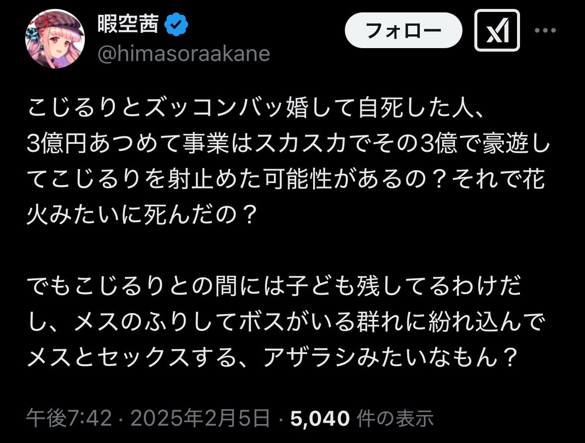 【悲報】暇空茜氏って、こじるりの反転アンチなのかな?-夫急死事件-