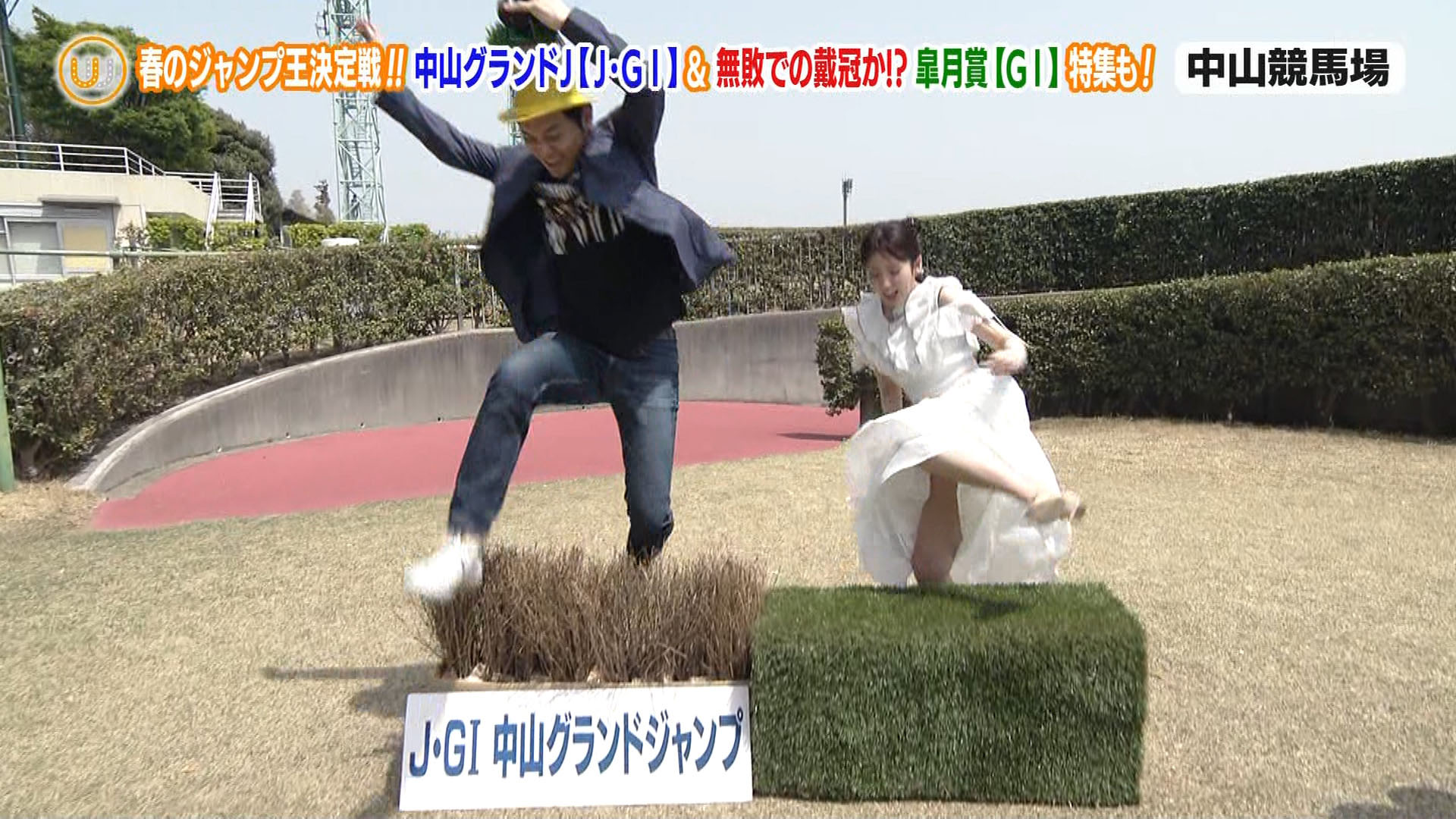 競馬の障害競走で使う障害物をまたいだ冨田有紀アナが、うっかりスカートの中をモロ見せにしてしまいました! 明るさ調整版付きで! [2025年4月19日 ウイニング競馬]