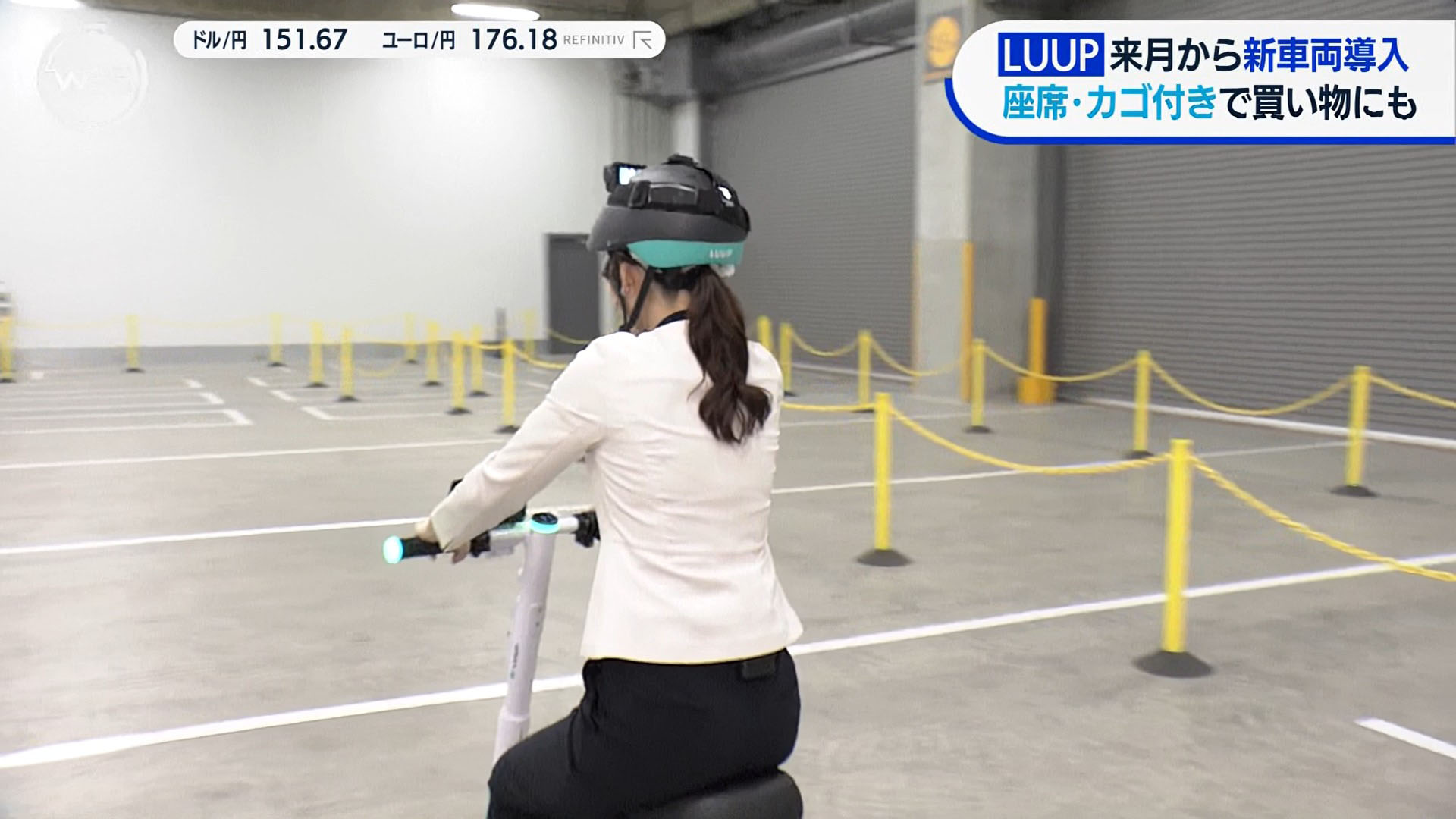 新型LUUPに乗る竹﨑由佳アナの背中にブラ線がくっきりと浮き出ていました! ピタパンのお尻もくっきり! GIF動画&明るさ調整版付きで! [2025年10月15日 ワールドビジネスサテライト]