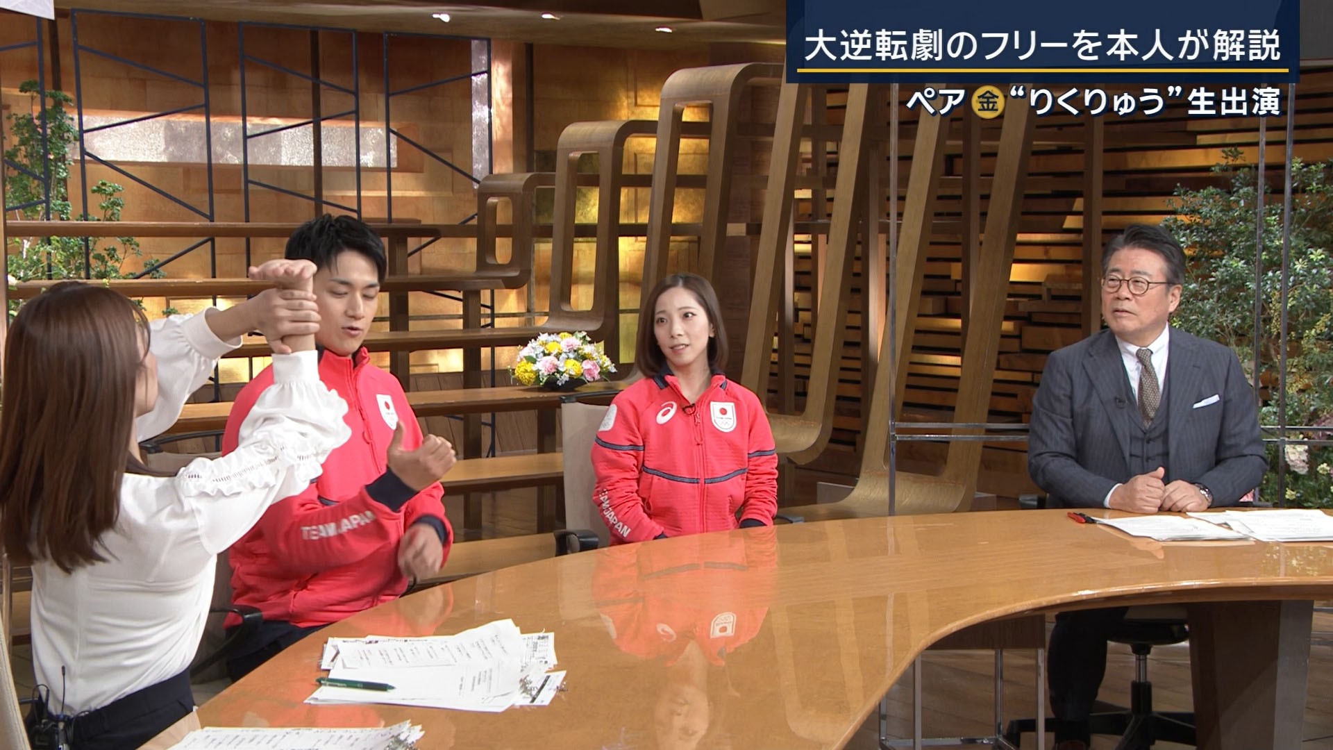透け衣装で「りくりゅうペア」を迎えた安藤萌々アナは、ブラ線もくっきりと浮き出ていました! 明るさ調整版付きで! [2026年2月25日 報道ステーション]