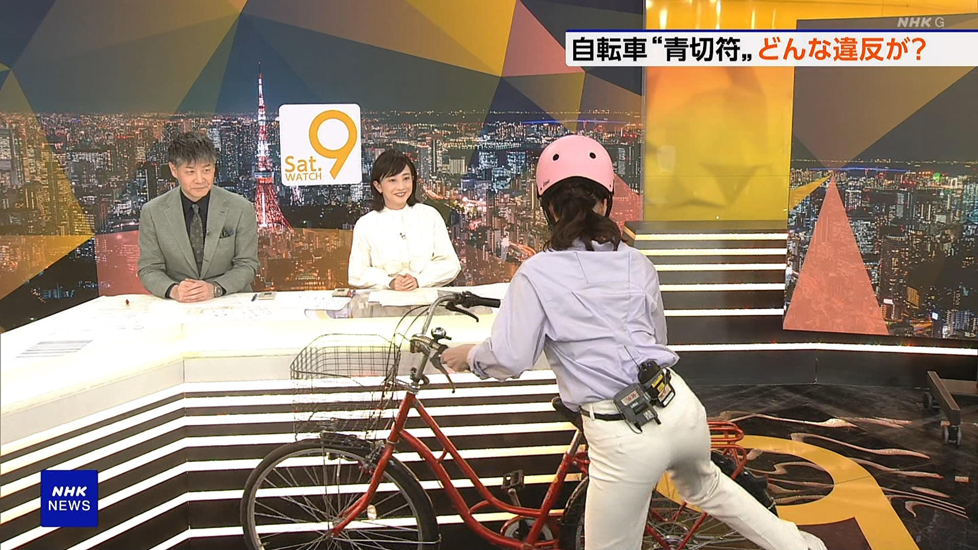 白と黒のピタパンを履いて自転車に乗った姫野美南アナのお尻にパン線が浮き出ていました! GIF動画x4&明るさ調整版付きで! [2026年4月4日 サタデーウオッチ9]